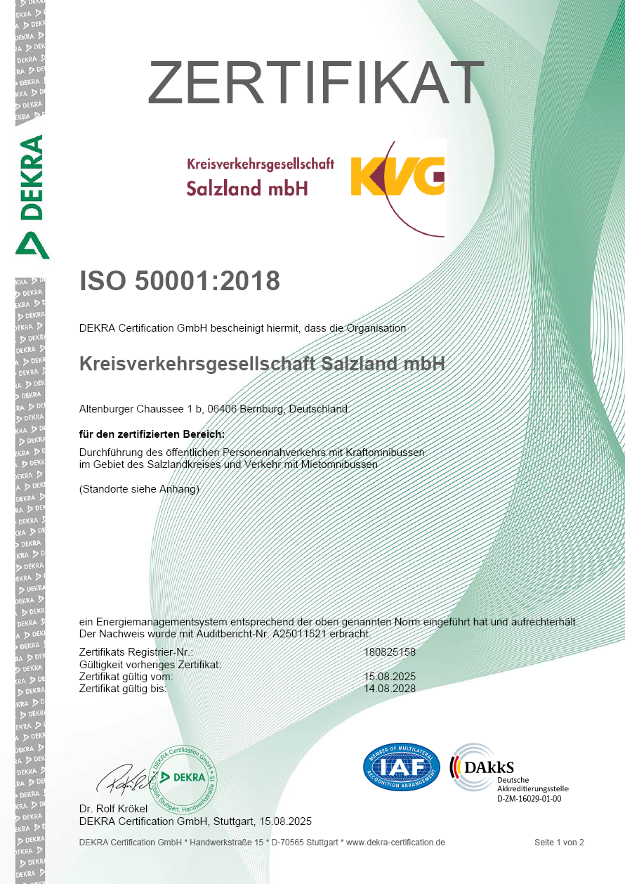 ISO 9001.2015 Zertifikat der KVG Salzland